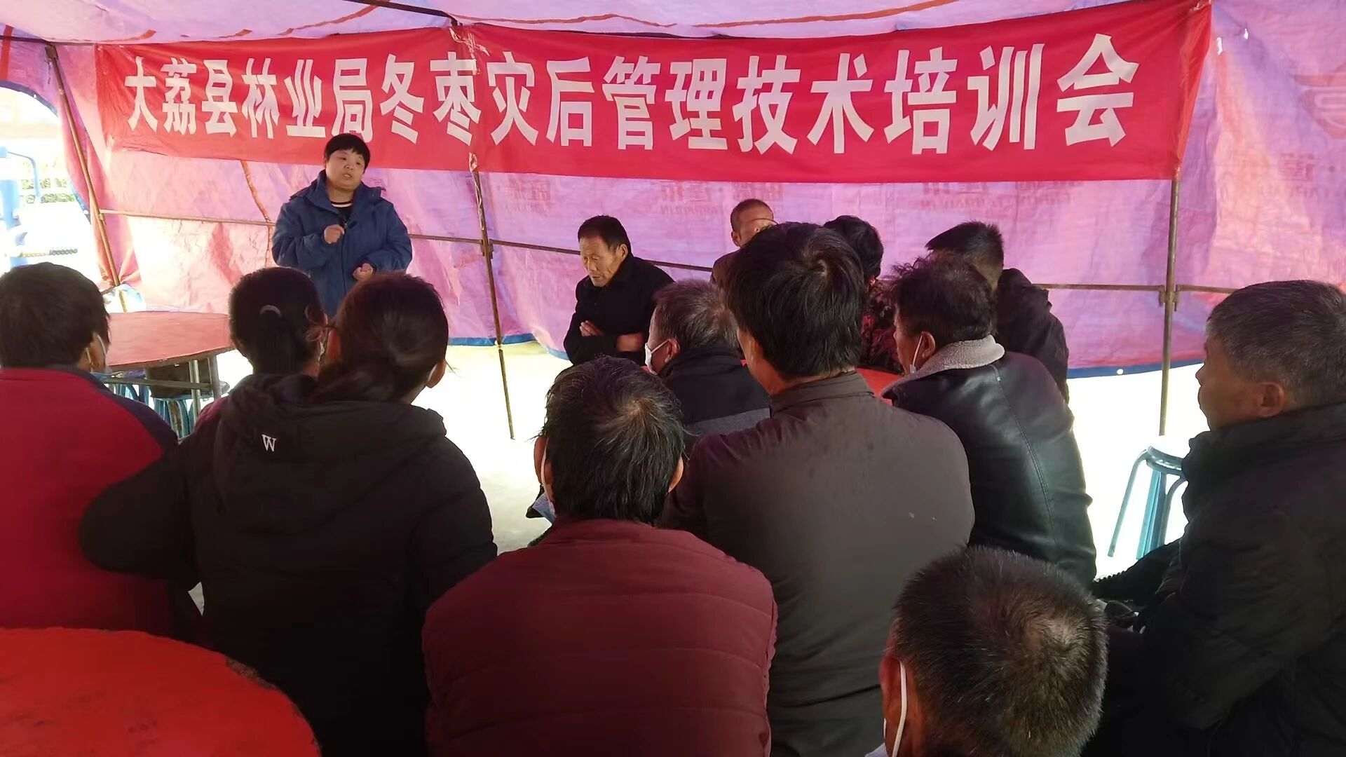 2021年10月洛河洪灾发生后,周爱英第一时间赶赴灾区。她带领团队趟着齐膝深水、踏过淤泥深入积水枣园排查灾情,联合西北农林科技大学教授制定灾后管护方案,紧急录制技术讲座视频在13个安置点循环播放,同步发放《水涝灾害后大荔冬枣应急管理措施》等资料,辗转各村现场传授修剪、病虫害防治技巧,有效稳定了枣农情绪,助力恢复生产信心。