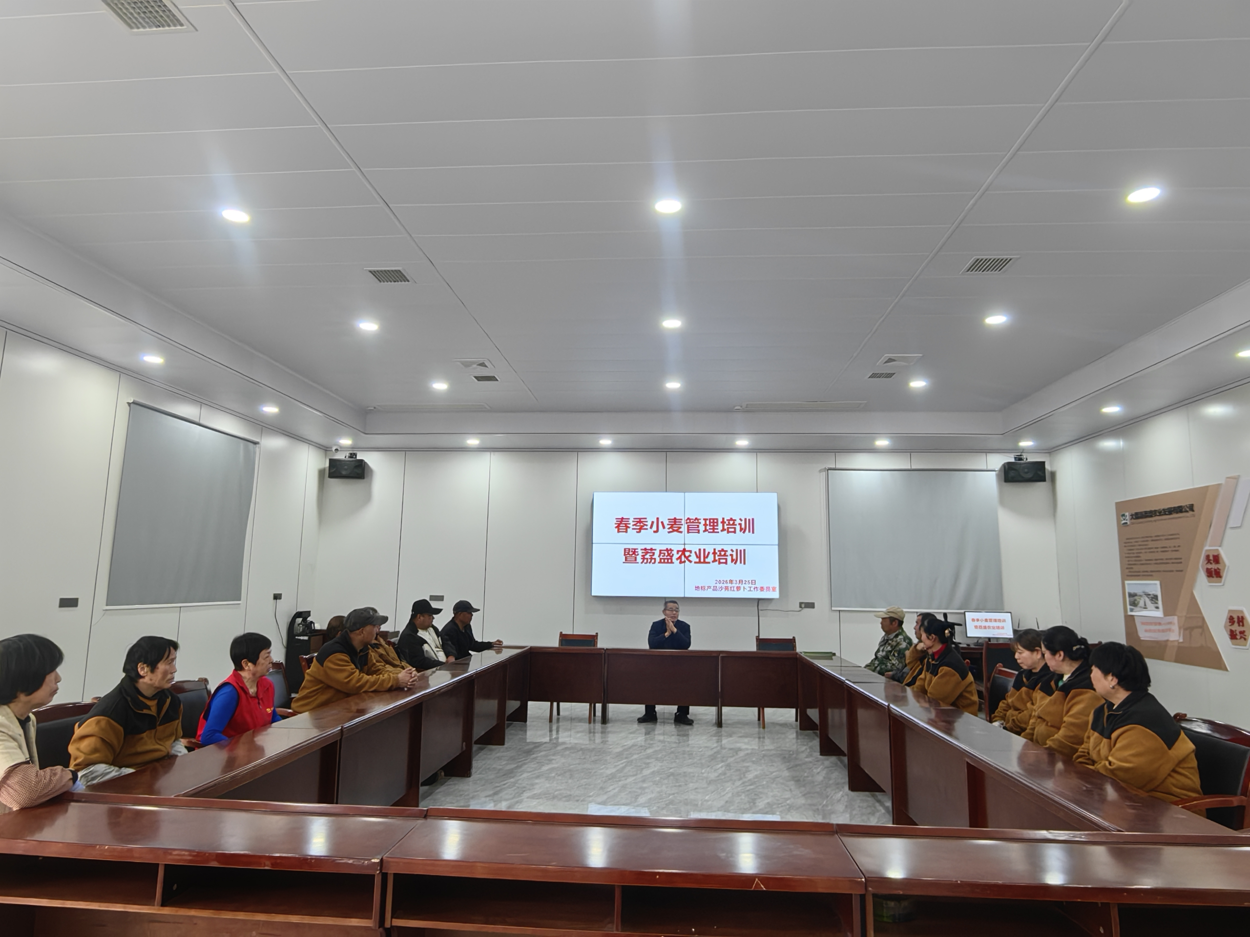 3月25日,县政协地标产品大荔沙苑红萝卜委员工作室组织开展春季小麦管理培训暨荔盛农业培训活动,县农技中心高级农艺师宋彦林主讲,种植大户、荔盛农业员工等20人参加。