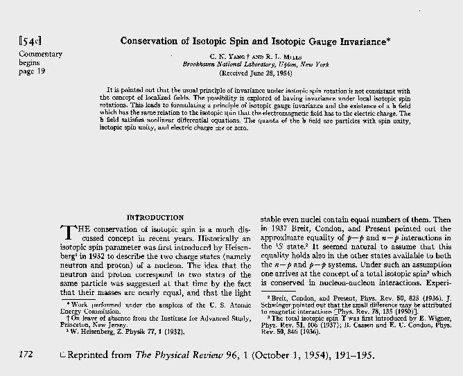 △1954年杨振宁与米尔斯关于“非阿贝尔规范场”的论文。