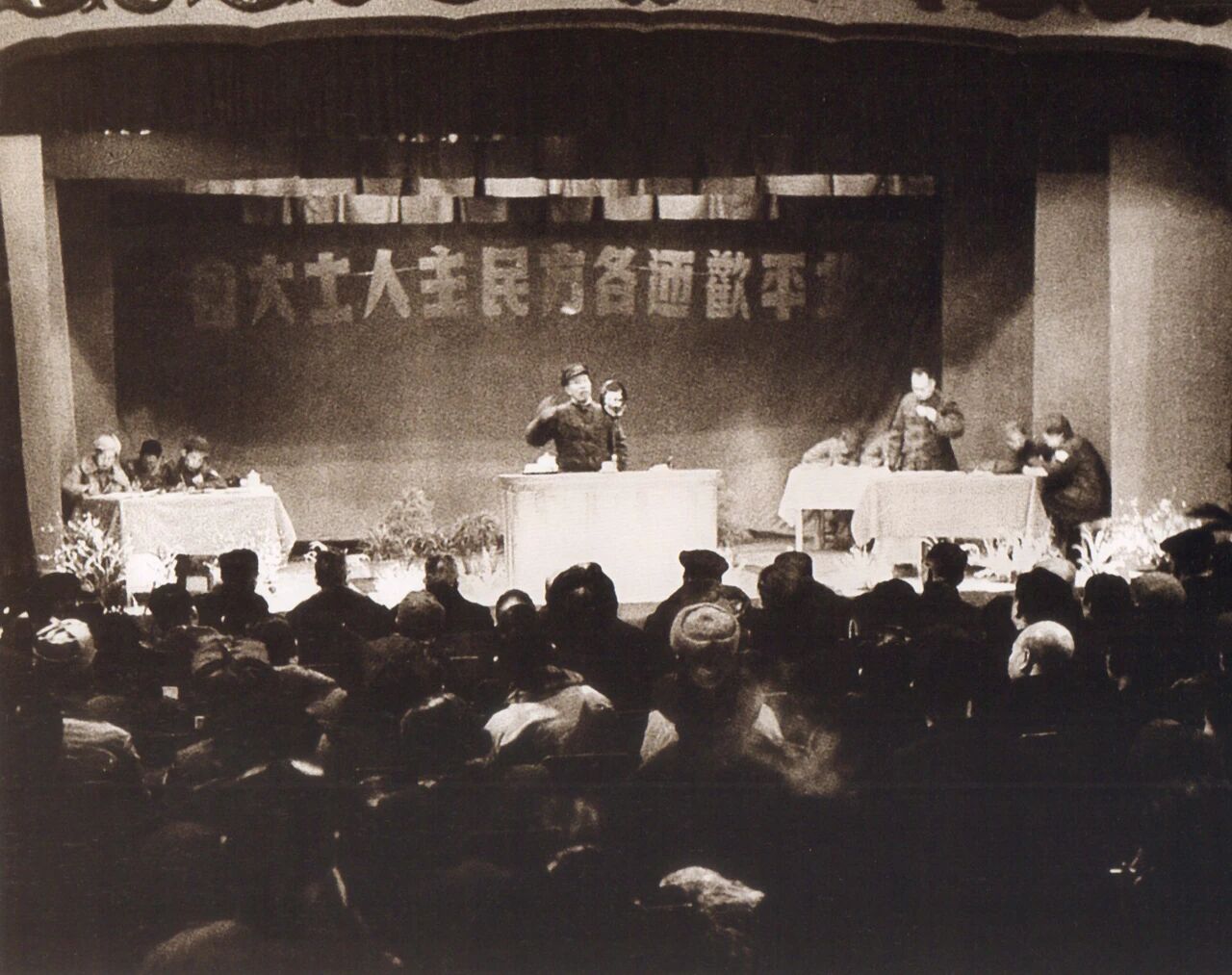 △1949年2月26日,董必武在北平中南海怀仁堂召开的欢迎各方民主人士大会上致辞。全场主席台红色底幕上的“北平欢迎各方民主人士大会”12个大字为齐燕铭书写。 布置新政协筹备会会场 1949年1月31日北平和平解放。是日晚,周恩来在西柏坡指示中央统战部秘书长齐燕铭和申伯纯、金城、周子健等几名同志:即刻行动,连夜出发到北平,为中央机关进京打前站。 2月3日到达北平的齐燕铭等人,与一同到达北平的民主人士张奚若、钱伟长、费孝通、雷洁琼、焦菊隐、周建人、胡愈之、田汉、吴晗、楚图南等,登上前门箭楼,参加盛大的中国人民解放军入城式。 也就在这时,北平首任市长、军管会主任叶剑英,把周恩来刚刚发来的紧急电报交给齐燕铭,指示他们先把中南海和北京饭店接收下来。这两个地方,一个将成为新政协筹备会议和正式会议的会址,一个将成为会议代表的下榻之地。 齐燕铭立即与军管会及北平纠察总队接洽,当天下午3点,齐燕铭和申伯纯就带领两名干部进入中南海办理交接手续。随后,他们开始对中南海内居住的闲散人员进行登记并移交北平军管会进行安置。接下来,他们对中南海的物资进行清点,清查了中南海所有房产的位置、面积、家具设备等,登记造册、绘制图表,勘察所有房屋的破损情况,制订修复计划,联系修缮单位。在北平市有关部门和单位组织的协助下,对中南海内的杂草和湖内淤泥进行了清理,整洁干净、环境优美的中南海开始迎接一个新的重大任务。 2月26日,中国人民解放军平津前线司令部、北平市军管会、中共北平市委、北平市人民政府在中南海怀仁堂联合举行欢迎大会,热烈欢迎从东北、天津、李家庄等地来到北平及留在北平的民主人士。 历史照片留下了当时的场景,怀仁堂主席台上,红色底幕上有“北平欢迎各方民主人士大会”12个大字。这12个大字是喜爱艺术,对金石篆刻、书法、京戏都有研究和功底的齐燕铭的杰作。在欢迎大会上,民主人士纷纷表示愿意在中国共产党的领导下筹建新中国。 这次欢迎会是中国共产党接管中南海后首次使用怀仁堂,这是中共中央派林伯渠亲往东北迎接民主人士到达北平后的第一次大联欢,是全国民主力量空前的大团结。 在北平中南海怀仁堂首次举行欢迎民主人士大会之后,中南海的“工作用途”就开始多了起来。4月1日,以张治中将军为首的南京政府和平谈判代表团,由南京飞抵北平。双方的正式和谈是在中南海勤政殿举行的。 在北平香山收到的一个接一个的胜利捷报声中,新政协筹备工作有序地推进着。在确定参会单位、党派和代表的同时,中南海的大门——新华门,开始进行新的装点。而新政协筹备会的会场确定在勤政殿后,也开始了前所未有的布置。 新政协筹备会由中央统战部来筹备。筹备处分工明确,擅书会写大字的齐燕铭担任新政协筹备处副秘书长,是统战部部长、新政协筹备处秘书长李维汉的助手,忙得连睡觉时间都没有,所以他在绘制了勤政殿和怀仁堂会场布置的简图后,具体的工作就交给了钟灵。 钟灵,在延安就是“四大忙人”之一,延安城墙上的标语几乎都出自他之手。他是热血青年,瞒着家人奔向延安。他从延安鲁艺美术系毕业后,在陕甘宁边区做文化教育工作,并在延安各报刊发表木刻、漫画作品多幅,还设计了“宝塔山”邮票。 钟灵在北平,充分利用当时现有的文化资源。如北平国立艺专的师生,这些师生曾主创了北平和平解放入城式正阳门箭楼检阅台的布置、庆祝北平和平解放大会主会场天安门城楼的布置。经请示,钟灵将北平艺专的董希文、周令钊等师生借调到中南海协助工作。张仃从北平美术专科学校国画系毕业后,赴延安任教于鲁迅艺术学院,后任陕甘宁边区美术家协会主席,东北解放后又到东北创办《东北画报》并任总编。他当时正负责大型画册《三年解放战争》的编撰工作,先抽调到中南海,全力保障新政协会议的召开,长期从事美术创作、多年擅写大标语字,见多识广、参加过并多次参与会场布置的一批文化精英,汇聚在中南海,开始对中南海暨新政协筹备会主要场所进行全新的布置。 新华门是中南海的正门,这座庄严的大门,经新政协筹备会工作人员的精心布置,已焕然一新,洋溢着蓬勃向上的气息。全新的布置,力求展现出协商创建新中国的喜悦与庄重。新华门二楼的八根廊柱间第一次挂上了7盏大红灯笼,把喜庆推向极致。一楼挑檐正中悬挂上了红底白字的巨幅会标:新政治协商会议筹备会成立会。 中南海勤政殿,作为新政协筹备会的会场,是布置的重点。勤政殿大门上方,悬挂“新政治协商会议筹备会成立会”的会标。勤政殿内的灯光源外置纱罩,营造出温馨而严肃的氛围。主席台上装饰着6面解放军的军旗,60面红旗分别排列在12个方柱上。主席台呈弧形,饰以紫色幕布。幕布前和发言席前有花卉点缀,给人以清新与活力的感觉。主席台口上方有大字会标:新政治协商会议筹备会。每个座位上都有编号,其座位图表已印好,随会议议程发放到每位参会代表的手中。 新华门大门、勤政殿门口和勤政殿会场内总共3幅会标,都一改过去传统从右至左的书写习惯,改为从左至右的书写方式,这体现了新政协的“新”。当然,创新与传统又有结合,即会标上的大字,还是沿袭了人们以往的阅读习惯,用的是繁体字。 邓初民提出临时动议 6月15日,参加新