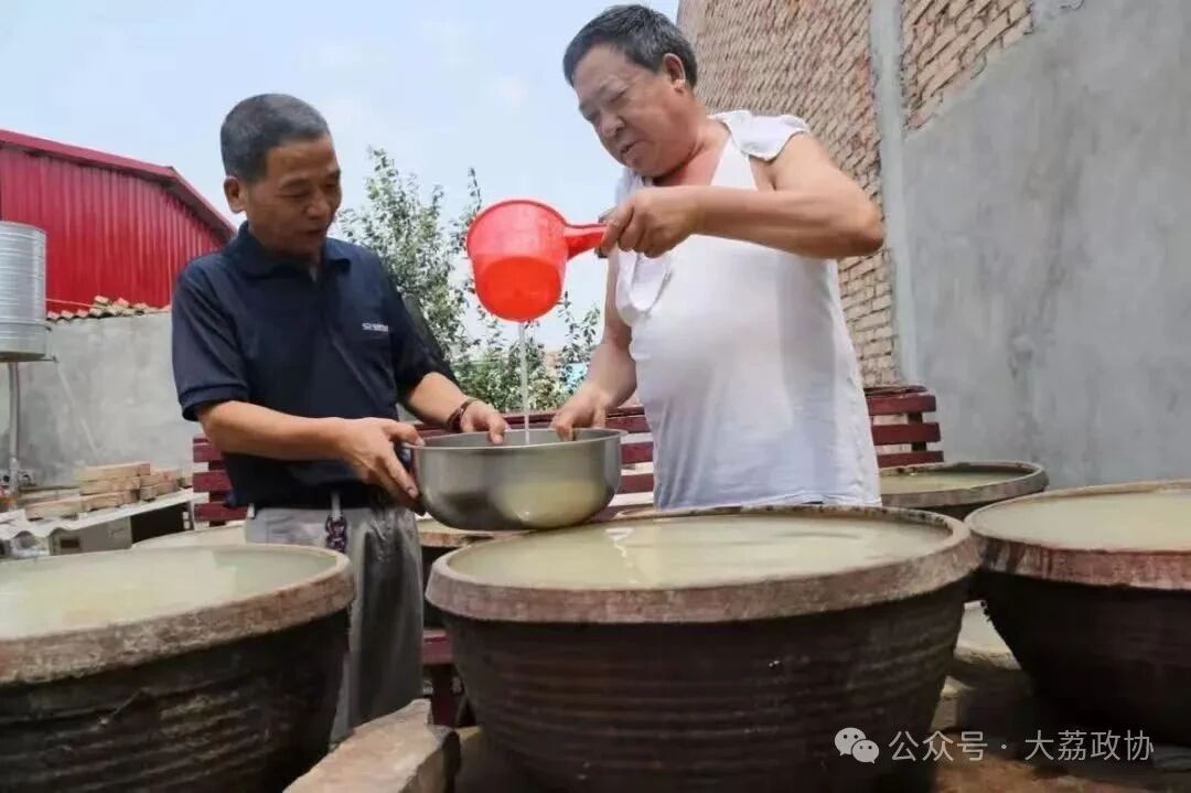 沙苑边有麦城村,(奇怪,大荔人不叫“麦城”叫“麦式”。高城不叫高城叫“高式”,霸城不叫霸城叫“霸式”等等,不一而足),村中有沙苑花痴赵祎文君,费四十年之光阴,打造了一处乡间牡丹园林。除了酷爱花草树木,他还继承了母亲的传统——晒浆水,二十年前与妻子开了一家浆水面馆,把赵家百年浆水推到前台,干的风生水起。前段时间去他家看荷花,同时采回浆水角子,回家酿制。恰好大太阳给力,十日晒成。刚好碰上高温,浆水旗花面片成为饮食佳选。连续吃了三天,清心去火,唇齿留香,余味绕喉。心中满意,诗兴随即袭来,一吟而就。