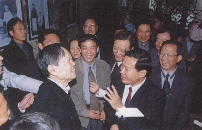 2001年重阳节,我陪同杨振宁来到安徽大学徽学研究中心,他在参观并作了建设性发言后即席题词:“我十分喜欢冯友兰先生的旧邦新命之说。为了发扬新命,要对旧邦多所认识。今天高兴看到贵校特设中心研究徽学。”后来我又在合肥见证杨振宁和翁帆出席杨振宁专题邮册发布会。在安大礼堂,他的开场白是:“很高兴看到这么多同学来听演讲,恐怕不仅仅因为我是中国人,还是合肥人。”诙谐的话语一下子拉近了和年轻一代的距离。