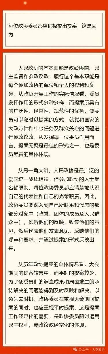 为什么要求政协委员积极提出提案?