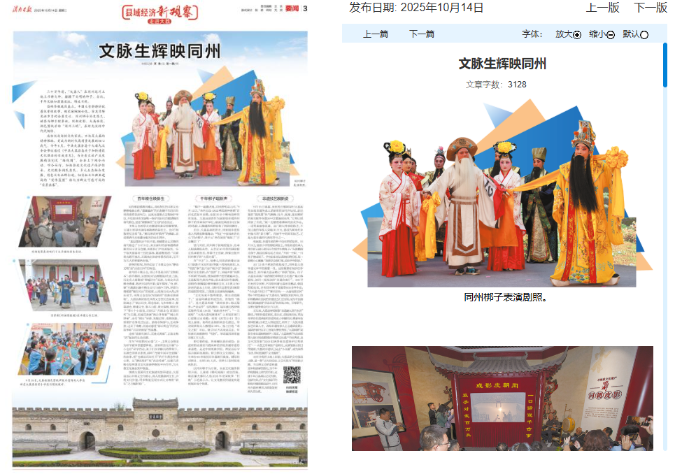 二十万年前,“大荔人”在同州这片土地上刀耕火种,播撒下文明的种子。自此,千年文脉如潺潺溪流,绵延不绝。 岱祠岑楼巍然矗立,丰图义仓静静诉说着往昔的故事,魏长城蜿蜒如龙,金龙寺塔见证岁月的沧桑变迁。同州梆子历史悠久,被誉为梆子腔鼻祖,同朝皮影、大荔面花、朝邑剪纸并称“同州三绝”,在时光流转中代代相传。 这份沉甸甸的文化家底,不仅是大荔的精神根脉,更成为新时代高质量发展的核心底气。今年8月,中共大荔县委十七届九次全会审议通过《中共大荔县委关于加快建设文化强县的实施意见》,为全县文旅产业发展精准划定“路线图”。全县上下闻令而动、听令而行,加快推进文化遗产保护传承、文化服务润民惠民、多元业态融合发展、特色文化品牌打造,切实把文化强县建设的“宏伟蓝图”转化为群众可感可及的“实景画卷”。 站在朝邑镇黄河滩头,青砖灰瓦的丰图义仓静静地矗立着,“豐圗義倉”的石刻题字历经百年风雨依然苍劲有力。这座全国重点文物保护单位,不仅是目前全国唯一保存完好且仍能储粮的清代粮仓,更是“储粮备荒”文化的活态见证。丰图义仓砖窑式仓廒延续秦汉窖藏智慧,12道U形导水墙传承隋唐防洪技艺。仓内“阎敬铭纪念馆”里,“解民悬而纾饿殍”的楹联,诉说着清代名相建仓赈灾的民生情怀。 “真没想到这个院子里,竟藏着这么完整的清代粮仓!”10月8日,来自深圳的游客跟着讲解员任宁走完仓廒,相机快门声此起彼伏。任宁每天要接待三四批游客,她感慨地说:“沿黄观光路开通后,天南地北的游客慕名而来,无不为古人的智慧所折服。” 游客的惊叹,恰恰印证了丰图义仓从“静态文物”到“活态空间”的转变。 如今的丰图义仓,早已不是孤立的“文物标本”:春节期间,实景剧《对话阎敬铭》在此上演,历史名人阎敬铭“穿越时空”巡游,与观众共话粮仓修建、救济灾民的往事;端午期间,“仓、粽、缘”主题演出融合粮仓文化与端午习俗,屈原与阎敬铭“隔空对话”的创意,让现场互动火热;国庆双节,丰图义仓变身为创新的“戏曲实景剧场”。大荔县剧团依托丰图义仓的历史故事,创排演出了“阎公回乡、筑仓选址、与乡绅智斗、智筹建仓、修建义仓、智斗山匪、救火保粮、粮安天下”等8个小场景,同时以“月满丰仓家国同欢”为主题,沉浸式表演“阎公冬枣宴”“阎公月饼宴”,还有“阎公”导游、戏服试穿、戏曲体验、射箭护仓等花式玩法。游客尽情参与,互动体验,过足了戏瘾,沉浸式感受“阎公筑仓”的历史故事和“共享团圆宴”的温馨。 这些“场景化展示、沉浸式表演”,正是文物“活”起来的生动注脚。 作为“中国黄河50景”之一,丰图义仓更成为研学教育的重要阵地。这里常态化开展“小小仓官”研学活动,孩子们在讲解员的带领下,实测仓顶排水系统,聆听“光绪年间开仓放粮”的故事,把“仓廪实而知礼节”的千年理念种进心里。从“静态保护”到“活态传承”,这座古老粮仓发挥黄河文化旅游带枢纽平台作用,为大荔文化强县筑牢根基。 围绕大荔黄河文化旅游风景带建设,大荔县还以丰图义仓为核心,深入挖掘洛河文化、沙苑文化价值,用多维度呈现方式让文物的“新生”之力辐射更广。 “梆子一敲震天地,同州腔吼动山河。”9月12日,“举世无双·2025稀有剧种盛典”在河北武安市启幕,全国30余个稀有剧种同台竞技。大荔县剧团作为国家级非遗同州梆子的传承保护单位,献演经典剧目《忠保国》选段,以激越的唱腔惊艳了国家级舞台。 后台,大荔县剧团团长、国家级非遗传承人何满堂难掩激动:“咱这‘中国戏曲活化石’同州梆子,终于从‘养在深闺’唱到了‘万众瞩目’!” 曾几何时,同州梆子因唱腔复杂、传承人短缺濒临失传。从艺近40年的何满堂接过传承重担后,坚持守正创新,探索出振兴同州梆子的“大荔方案”。在“守正”上,他牵头用高清影像记录《三娘教子》《双官诰》等数十部传统剧目,从“吼腔”换气技巧到“翎子功”身段细节,逐一留存文化基因;在“创新”上,突破声腔“同腔不同调”的局限,既保留梆子腔的激越本色,又适配现代演员声线;剧本紧扣时代脉搏,创排的《银镯鉴》聚焦廉政文化、《丰图义仓》讲述的是本土历史、《黄河岸边枣花香》展现的是脱贫攻坚,三部剧目巡演场场爆满。 “文化传承不能等靠要,得主动找路子。”这是何满堂常说的话。而他的“路子”,是大荔县构建“政府扶持+购买服务+产业运作”良性循环:每年通过政府购买服务完成136场“戏曲进乡村”,“一元剧场”“大美大荔戏聚周末”让村民在家门口就能过足戏瘾;创排《冰雪公主》等3部儿童剧,每周在县剧院常态化演出,带动剧团观众人数增长30%;线上打造“戏文之旅”平台,吸引8.6万名戏迷关注,年轻演员直播教唱“吼腔”,单场最高观看量突破2万人次。 更可喜的是,传承梯队逐步成型:县政府推动剧团与渭南师范学院共建非遗传承基地,走进中国戏曲学院、西安音乐学院开展讲座展演;借力群众文化组织,每年举办60余场民间非遗剧目展演,辅导培训班社、社团165人次,培养12支村级戏曲队伍。 以同州梆子为引领,全县文化服务持续升级。儿童剧《哪吒闹海》成功首演,朝邑镇大寨村入选2025年全国秋季“村晚”示范展示点,让文化惠民的温度传递到城乡每个角落。 9月15日清晨,来到羌