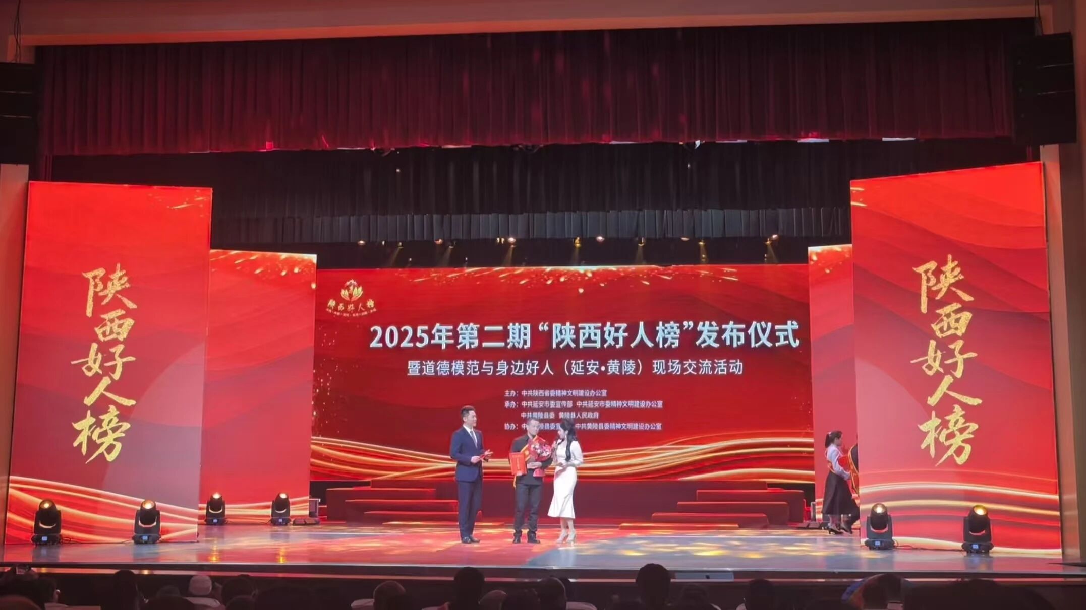 喜报:11月5日,2025年第二期“陕西好人榜”发布仪式暨道德模范与身边好人现场交流活动在延安市黄陵县举行,我县李天恩荣获“孝老爱亲好人”。