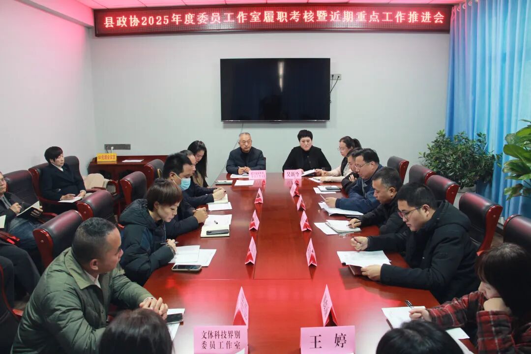 12月19日,县政协召开2025年度委员工作室履职考核暨当前重点工作推进会。会议传达学习了党的二十届四中全会精神和省委、市委政协工作会议精神,通报了委员工作室履职情况,安排部署提案征集、协商议事、社情民意信息等各项重点工作。