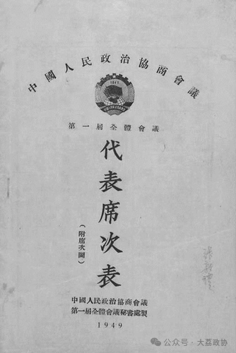 《中国人民政治协商会议第一届全体会议代表席次表》