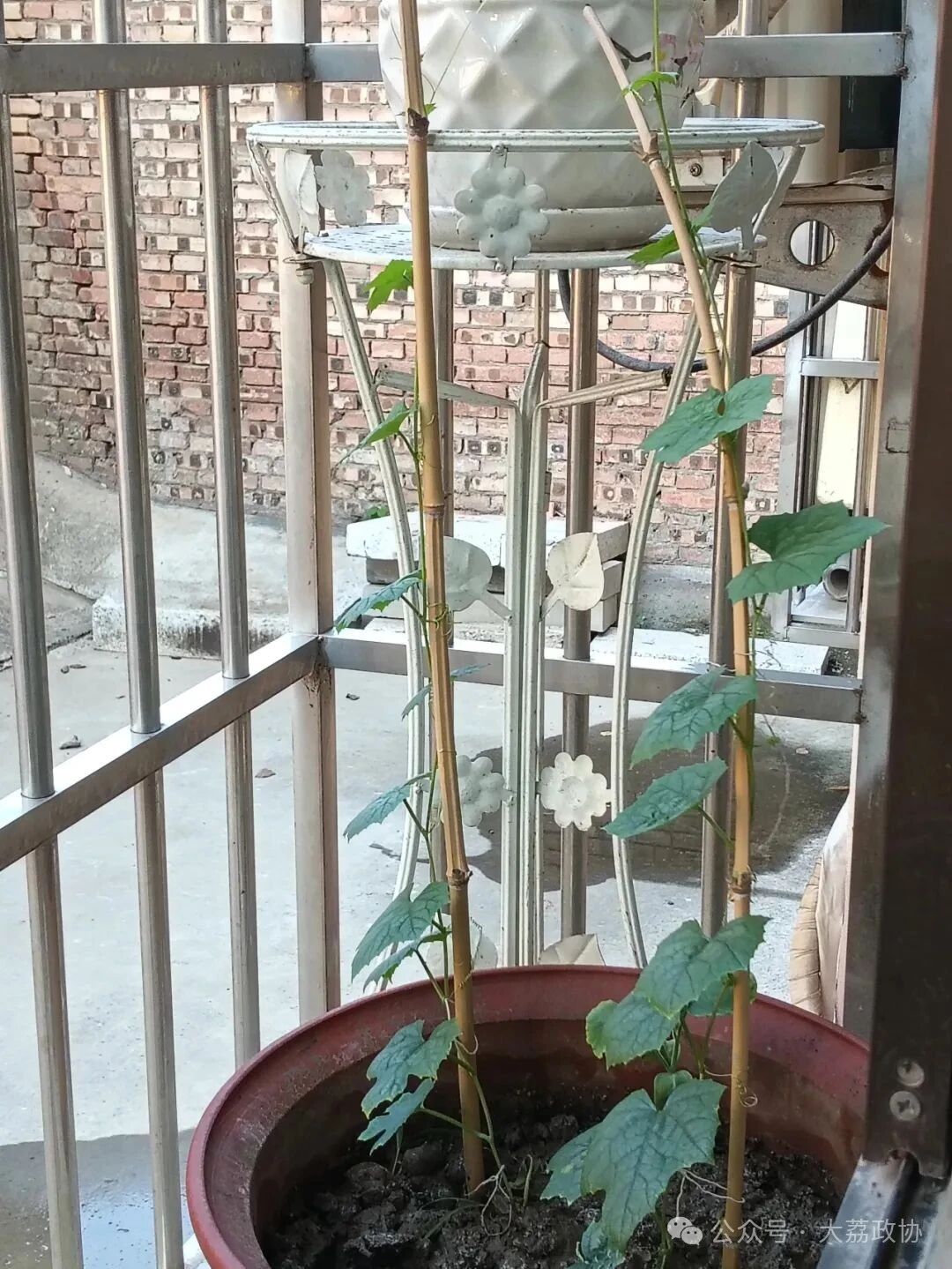 现在,我坐在沙发上就可以望见它们冒出来的嫩叶,不几天,它们也许就会攀着户外的防盗栏无限生长了。看着弱小的瓜藤,我仿佛看到了它们爬上窗户,在那里一片挨着一片,一片挤着一片,把眼前装扮的绿意盎然,让人心旷神怡的情景,想着想着,心里都美滋滋的!